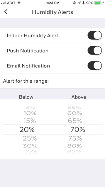 | Get alerts sent right to your inbox when your home's temperature or humidity breaks your comfort range. |