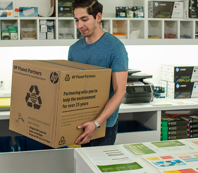 Original HP toner cartridges conserve resources when printing, and are easy to recycle when they’re empty.1 |