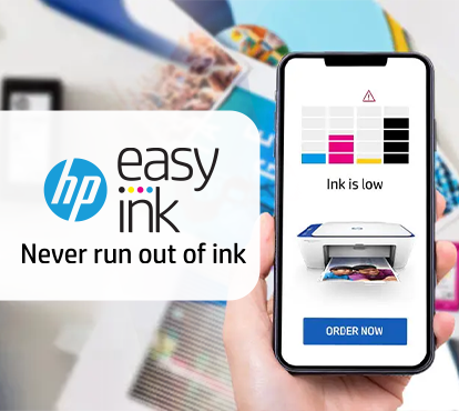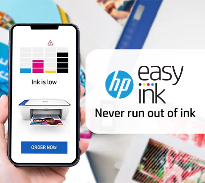 | HP Easy Ink alerts you when you're running low on ink. Order your ink with plenty of time and get free same-day delivery to your doorstep.* Never run out of ink again! |