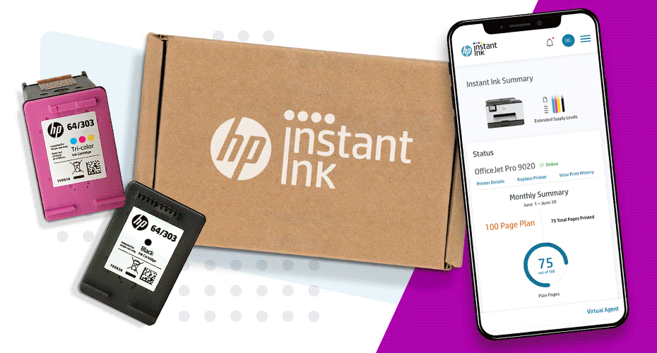 Ink delivered when you need1 it with HP Instant Ink. The hassle-free, money-saving ink subscription service. |