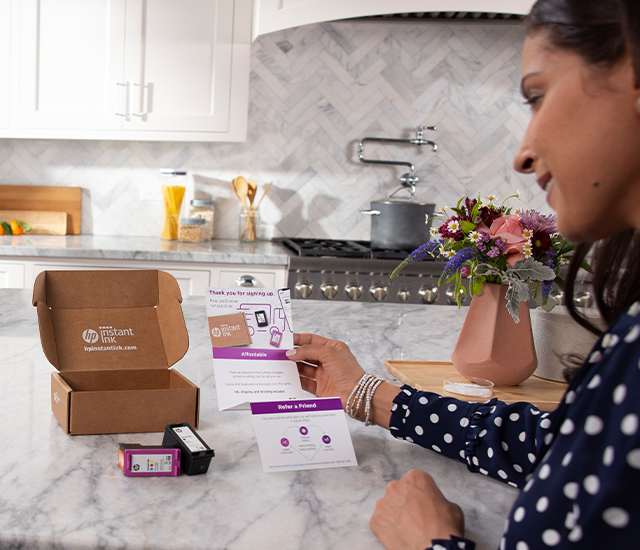 | Ink delivered when you need3 it with HP Instant Ink – the hassle-free, money-saving1 ink subscription service. |
