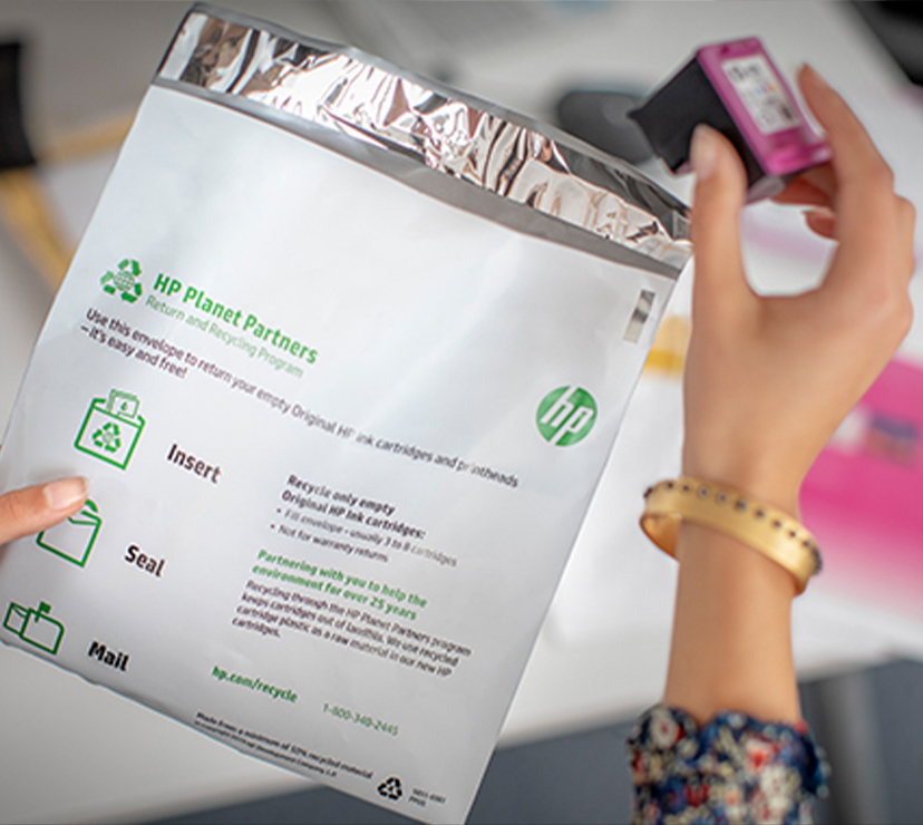 Thanks to HP Planet Partners, recycling your ink cartridges has never been easier. Customers can choose to recycle their used cartridges for free so they don’t end up in oceans or landfills. |