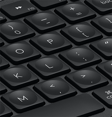 | Spherically-dished keys match the shape of your fingertips, offering a satisfying feedback no matter where you tap. |