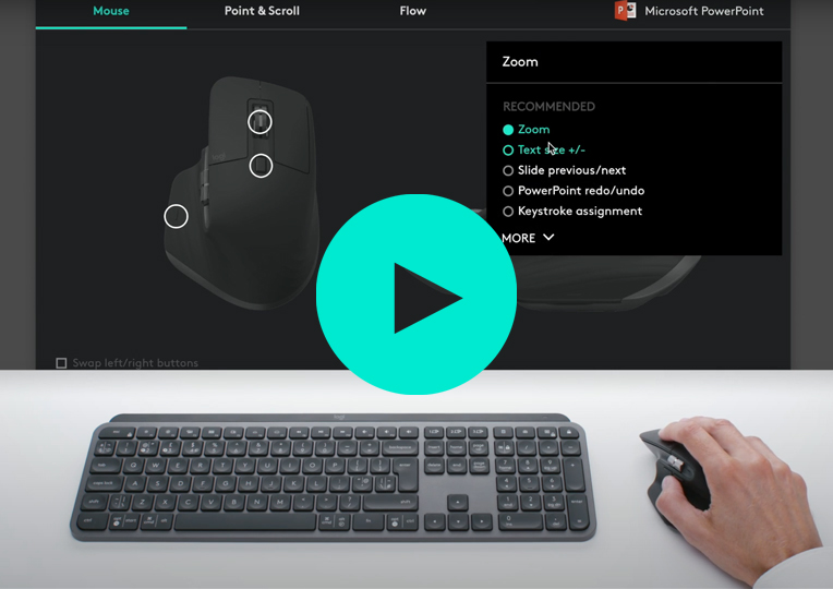 | Click and hold the button as you move the mouse to use gesture commands. |