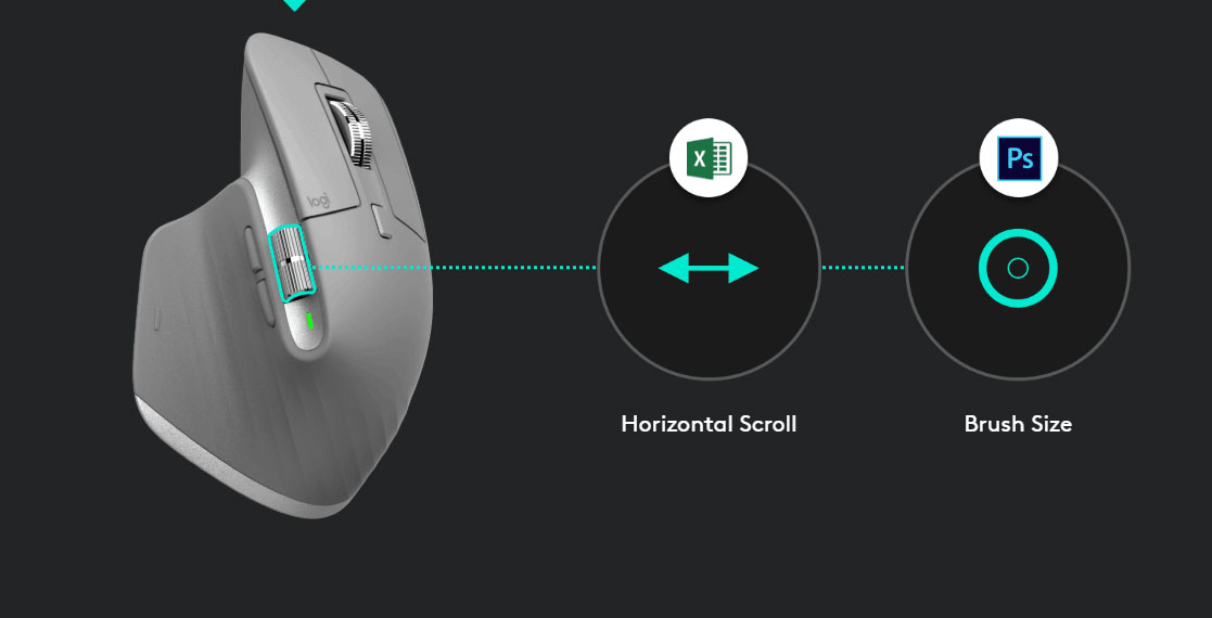 | Scroll horizontally with a gentle turn of the thumb wheel. |