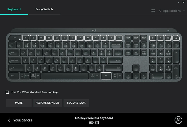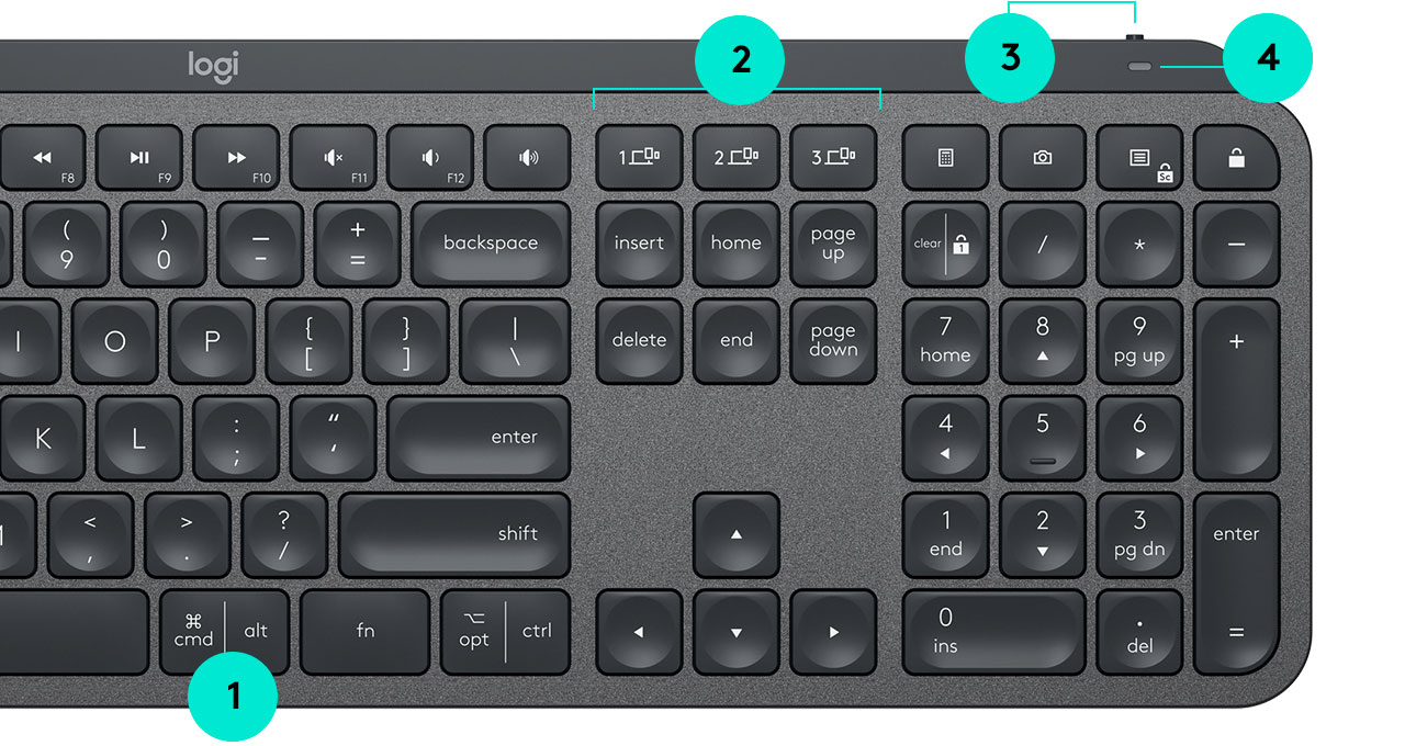 | Use this button to power your MX Keys on and off whenever you need to. |