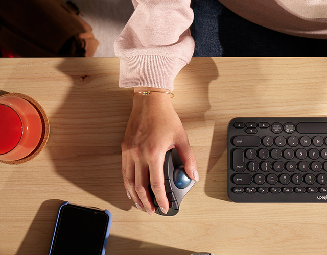 ERGO M575 is great for tight spaces, busy desks, and any surface.