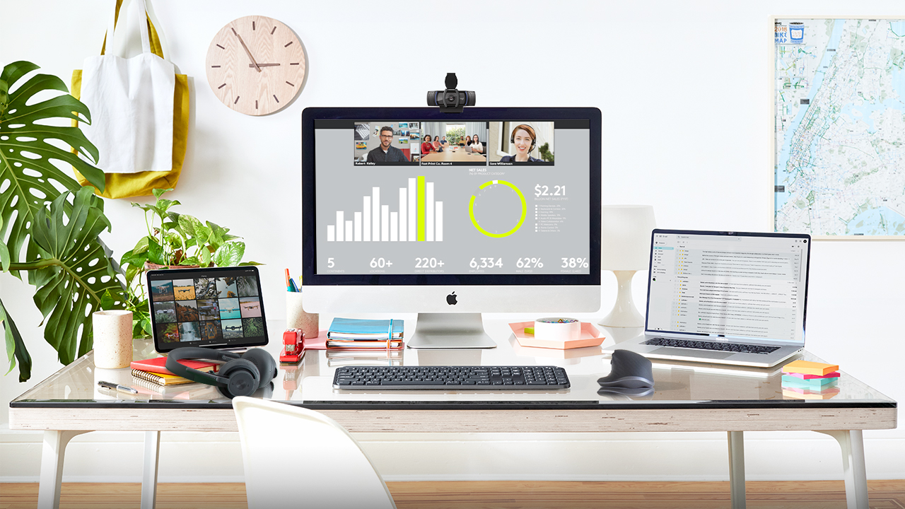 With an external screen, webcam, mouse, and keyboard, it's easy to create a more productive work environment. Avoid fatigue, discomfort and even pain with the right equipment and placement.