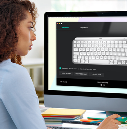 Download Logitech Options and register your MX Keys Mini to get started. Your devices show up as on-screen images, so they're easy to find, switch, and set up in seconds.