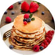 Prepare for a long day at the convention with a heaping plate of pancakes.