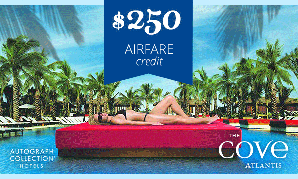 Terms & Conditions: A 4 night minimum stay required. $250 airfare credit applies to new air-inclusive bookings originating from the U.S. and Canada only. Must select Air + Room and include promo code SAVE250 to receive discount. Must be booked by 11/03/15 for travel through 06/05/16. Blackout dates: 11/22/15-11/27/15, 12/20/15-01/02/16 & 03/19/16-04/02/16. One credit per room per stay. No refund for cancelled airfare. Click here for complete restrictions and details.