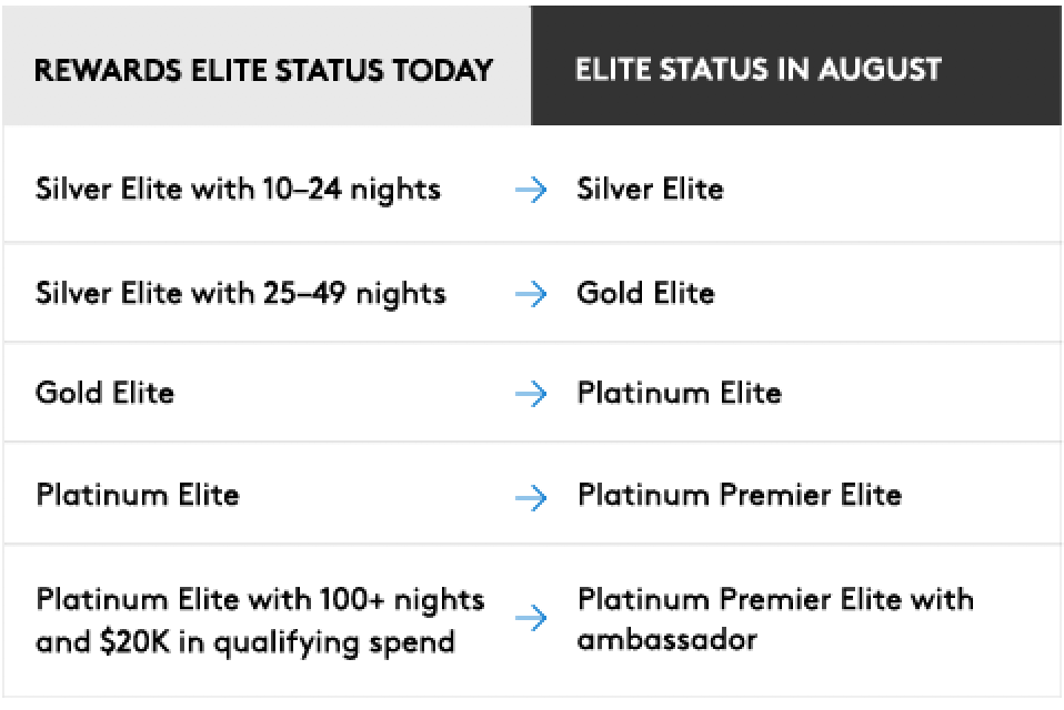 | This August, our three programs will become one. And it will be easier than ever to enjoy the benefits of Elite status. For starters: You’ll get consistent benefits and recognition at more than 6,500 participating hotels across 29 brands in 127 countries. |
