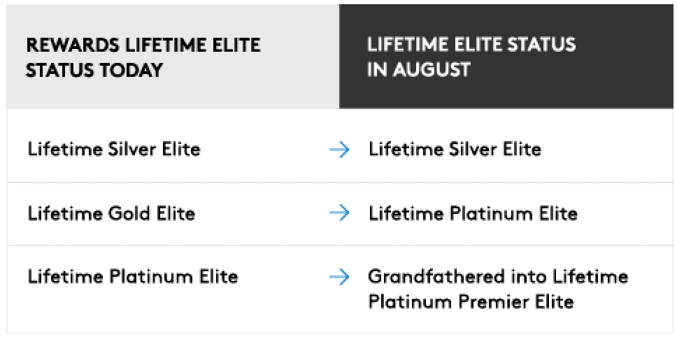| Rest assured, as a Lifetime Platinum Elite member, you’ll always have Lifetime status in our new program. Take a moment to explore what the August updates to Lifetime Elite status do for you. |