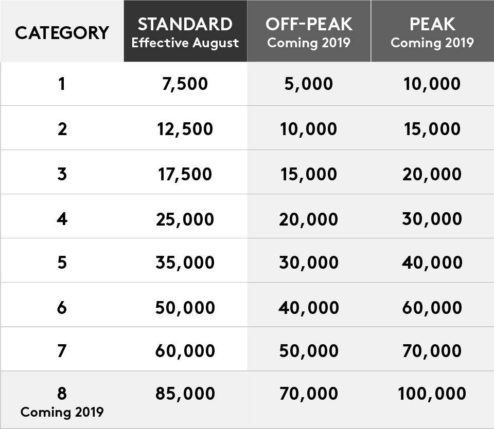 | Future Category 8 hotels are priced at Category 7 rates until 2019. Redeem this year to save up to 20% on points and guarantee your lower rate. |