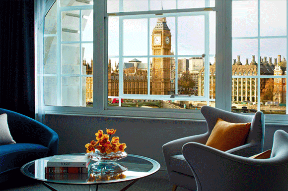 This iconic British hotel boasts views of major London attractions, plus a restaurant featuring over 100 types of gin.