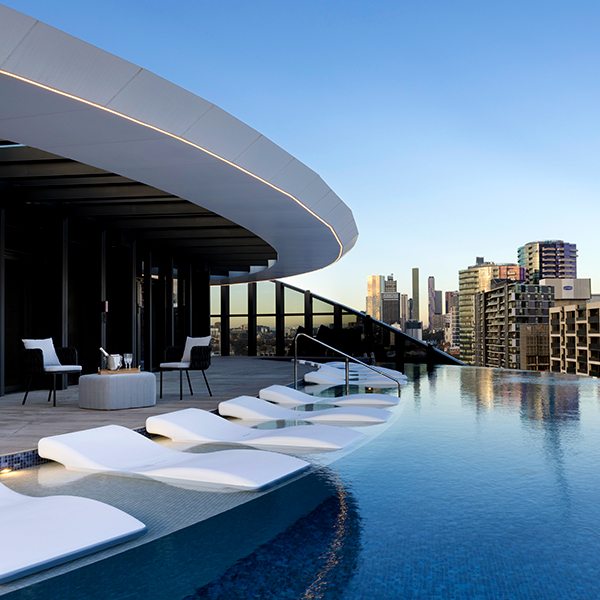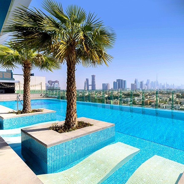 | A bold and vibrant social scene awaits you at Aloft® Al Mina, Dubai where you'll also find an outdoor infinity pool overlooking the Dubai skyline. |