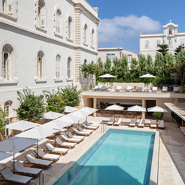 Stroll through the historic city, or relax by the gorgeous courtyard pool ringed with umbrella-shaded lounges at The Jaffa, a Luxury Collection Hotel, Tel Aviv.