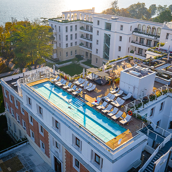| Soak in 360° views in secluded sophistication from the rooftop pool overlooking the lagoon and the Venetian skyline at the JW Marriott® Venice.