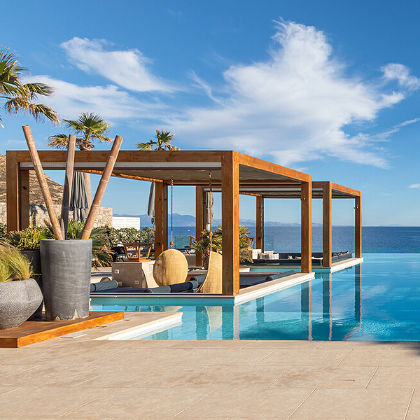 Step onto balconies with Aegean views or bask in your private pool while taking in the culture of Mykonos at Santa Marina, a Luxury Collection® Resort at Ornos Bay.