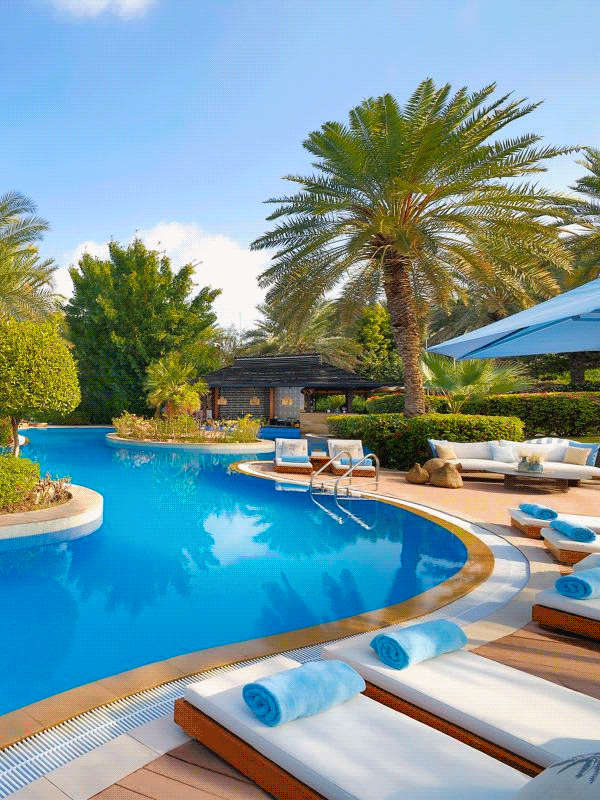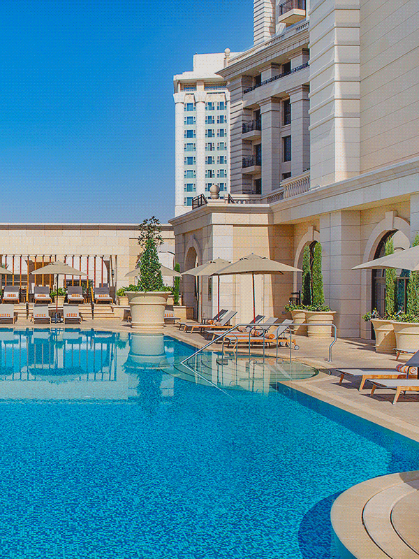 Take a dip in the dreamy indoor pool, or bask under the sun at the dazzling outdoor pool at The Ritz-Carlton®, Amman — then try a drink from the vibrant poolside grill.