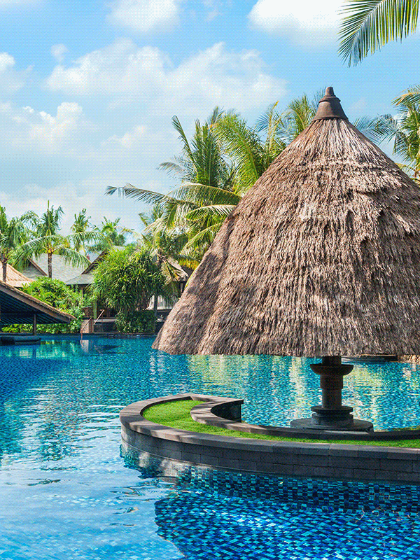 At The St. Regis® Bali Resort, relax in the vast saltwater pool that echoes the form of a natural lagoon, unwind in the heated pool, or [savor][savour] cocktails from the swim-up bar.