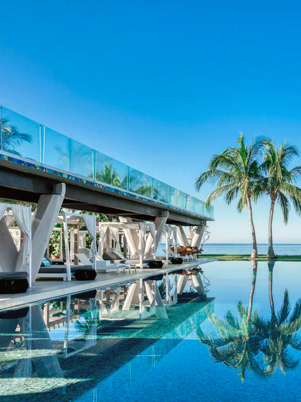 Lounge, splash, eat, and sip at the shimmering beachside pool at W® Punta de Mita, or bounce to the beat from one of two whirlpools situated by the DJ booth.