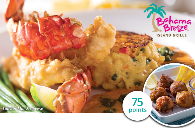 Escape to the islands any day of the week and we’ll make something delicious for you. Plus, you can earn and redeem Rewards points with us too—like our Conch Fritters for just 100 points.