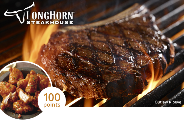 Expertly seasoned and bold in flavor—we grill steak just how you like it. And, you can earn and redeem Rewards points with us too—like our Spicy Chicken Bites for only 100 points.