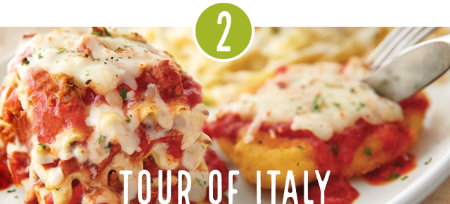 Enjoy three classics all on one plate—Chicken Parmigiana, Lasagna Classico and Fettuccine Alfredo.