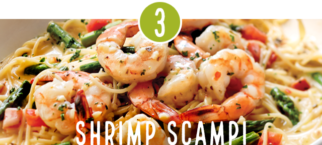 Light in calories, but not in flavor, savor sautéed shrimp, tossed with asparagus, tomatoes and angel hair pasta.