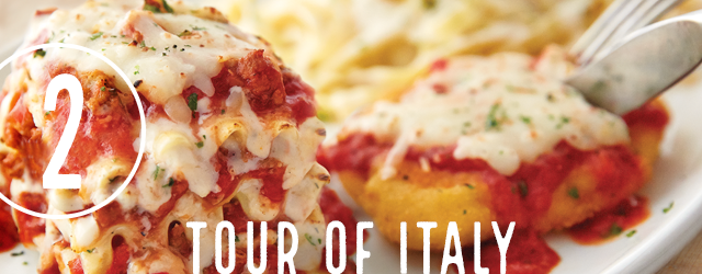 Enjoy three classics all on one plate—Chicken Parmigiana, Lasagna Classico and Fettuccine Alfredo.