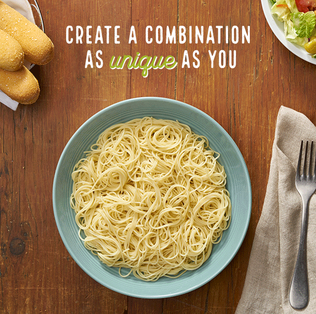 Choose from 6 pastas, 5 sauces and 5 toppings to create your own perfect plate of pasta. The pastabilities are endless.