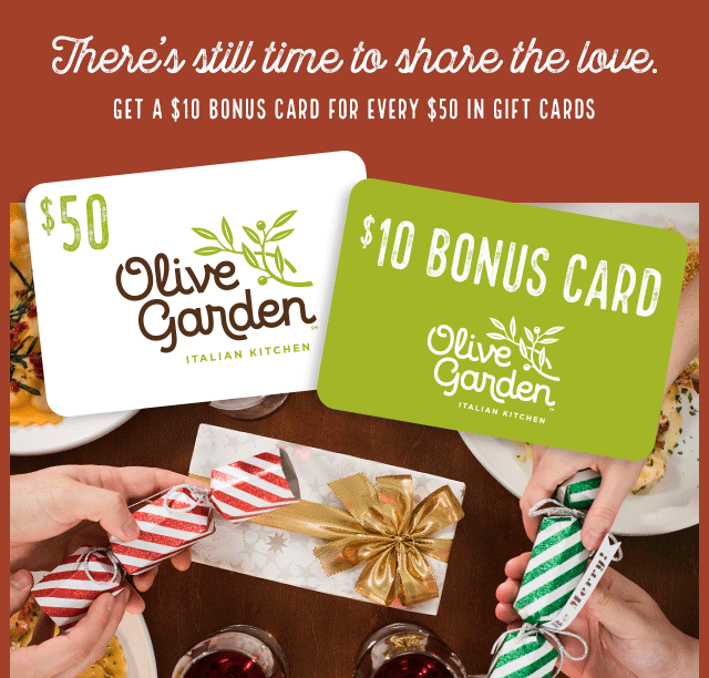It's your last chance to give a gift everyone will love. Plus, get a $10 Bonus Card* with every $50 in gift cards purchased.