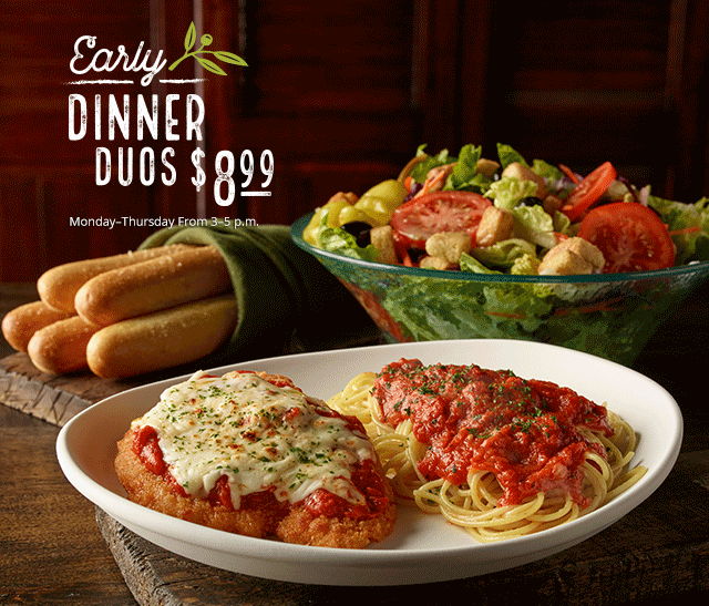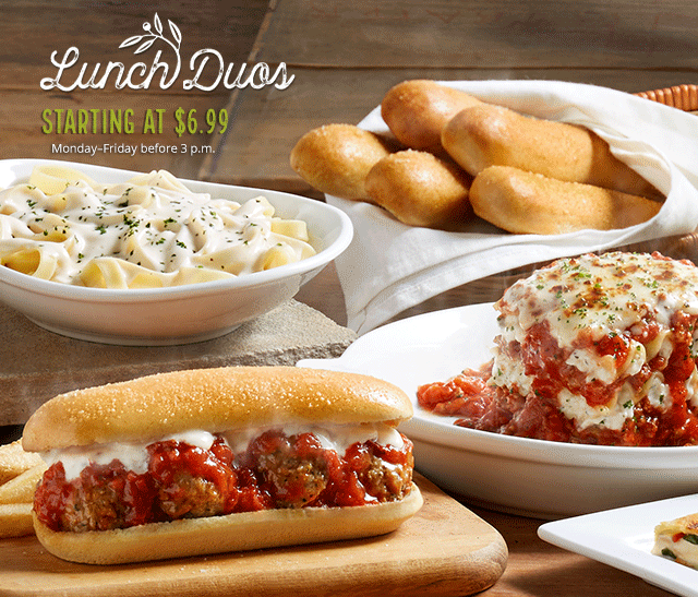 Enjoy over 250 combinations at a great price every day. Start with all the soup or salad and breadsticks you want, followed by your favorite dishes. All starting at under $10.
