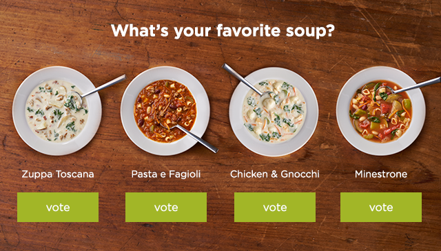 Brrr … hurry inside! It's the perfect time of year to celebrate soup. Enjoy unlimited bowls of our four classic soups with any entrée.