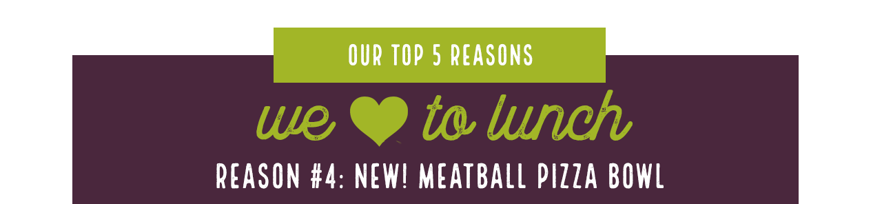 Try our newest Lunch Duo entrée–our Meatball Pizza Bowl. Complete your duo with unlimited soup or salad and breadsticks.
