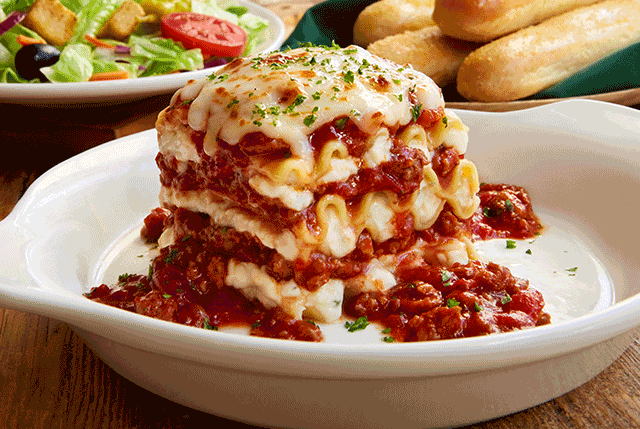 Enjoy one of our classic mini pasta bowls as part of your Lunch Duo. Choose from Spaghetti with Meat Sauce, Fettuccine Alfredo or Lasagna Classico. Plus, all the soup or salad and breadsticks you want.