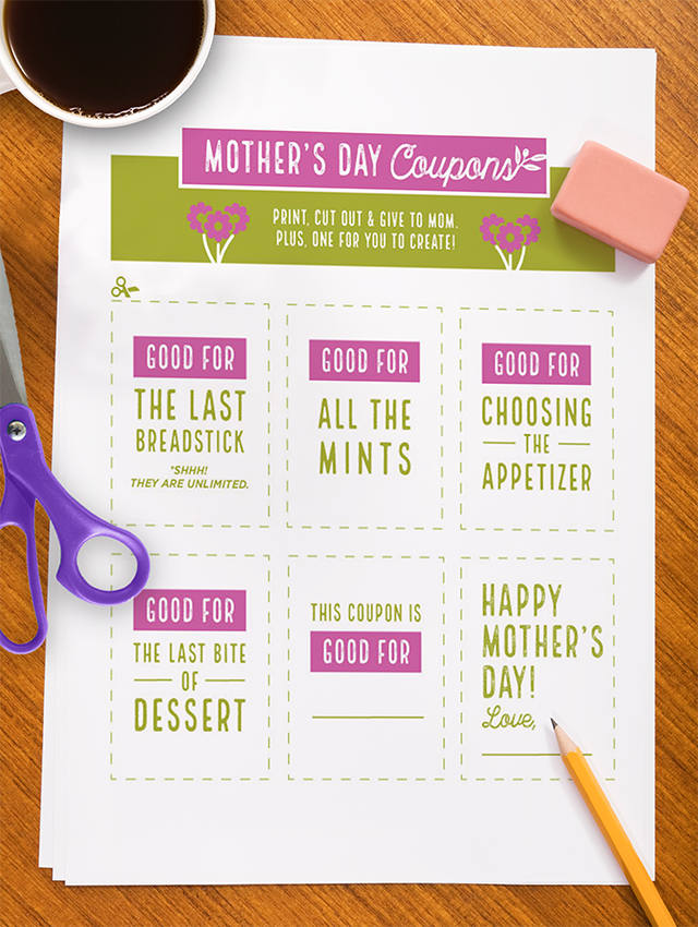 Download & print these fun coupons just for Mom. We know she'll love them.
