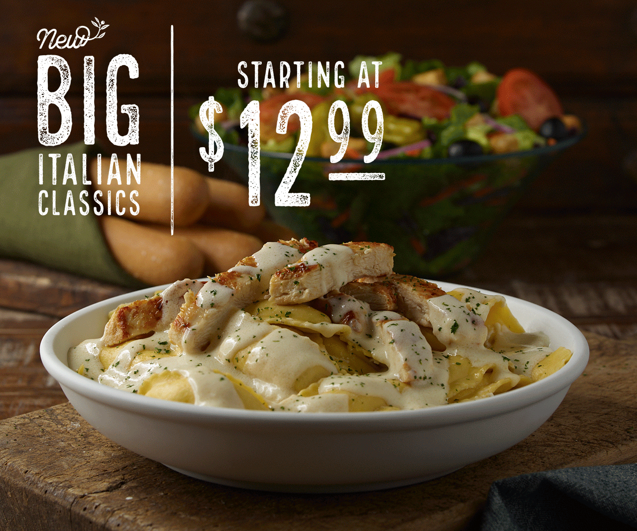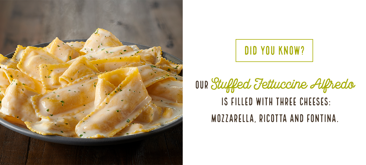 We've made your favorite classics kind of a big deal. From our Stuffed Fettuccine Alfredo to our Giant Meatball & Four Cheese Manicotti, you won't believe the size of our new dishes.