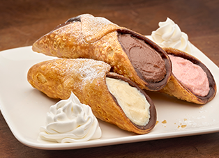 End on a sweet note with 3 flavors of traditional Italian cannoli.