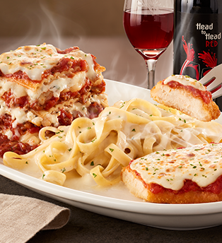 Enjoy 3 classics all on one plate. Plus, unlimited soup or salad and breadsticks.