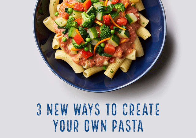 We've added two new sauces and one new topping to create your own pasta—Creamy Mushroom sauce, Creamy Pesto sauce and Garden Veggie topping. Starting at just $9.99.*