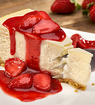 A classic combination to celebrate the day, try our Seasonal Sicilian Cheesecake topped with strawberry sauce.