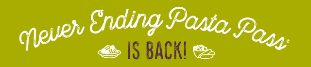 Get 52 weeks of unlimited servings of pastas, sauces and toppings from our Never Ending Pasta Bowl® menu.