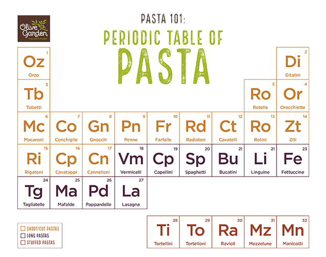 Ace Pasta 101 with our Periodic of Table Pasta poster download—a fun way to learn about pasta shapes!