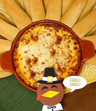 Get our famous Breadsticks, plus our new Lasagna Dip and add a fun turkey face from your local craft store to make this Breadstick Turkey appetizer.