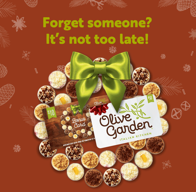 Download our all–new Olive Garden mobile app to make gift giving even easier.