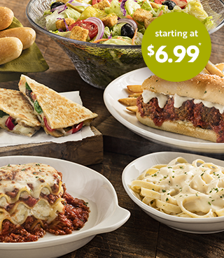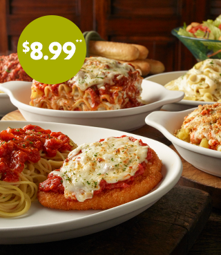 Choose from 1 of 11 Lunch Duos entrés, plus soup or salad and breadsticks.