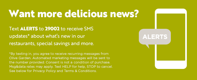 By texting in, you agree to receive recurring messages from Olive Garden.