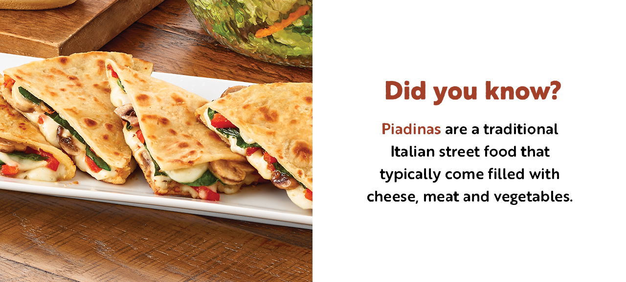 A traditional Italian street food, we've got 2 delicious piadina options.